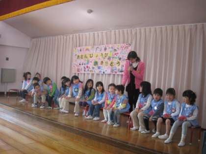 3月生まれの人は、全部で17人でした。年長さんの人数が多かったでした。おめでとうございます。お楽しみは、年少さんのお母さんたちが、素敵な歌をプレゼントしてくれました。
