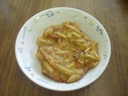 2. 豆腐、たまご、小麦粉、さとう、塩を合わせて生地を作る。