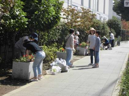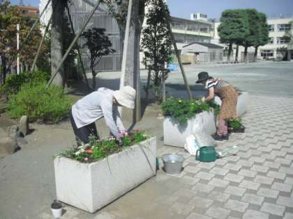 シルバーウィーク最終日の23日水曜日に学校の周りや校庭内にあるプランタに花が移植されました。学校運営委員の方々やTAPの方々、保護者、卒業生の皆さんが、きれいに植えてくださいました。これから、色づく街路樹とともにきれいな花を咲かせてくれます。ぜひ、通りすがりに愛でてください。