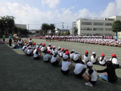 10月3日(土)は、創立140周年記念運動会が開催されます。子どもたちは、毎日、一生懸命に練習に取り組んでいます。そして、今日は、いよいよ、全校練習が始まりました。1000名を超える児童が音楽係の演奏に合わせて入場します。また、高学年代表の応援団が運動会を盛り上げるために迫力ある応援でみんなを引っ張っています。今週の土曜日には、ぜひ、ご来校いただき、子どもたちの躍動する姿をご覧ください。