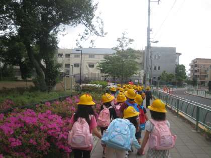 13時15分、予定通り、学校に帰ってきました。お弁当の途中、少し雨に降られましたが、その後は、降られることもなく、無事に帰ってくることができました。子供たちは、楽しかったと言っていました。友達関係も深まったことでしょう。集団行動が立派にできる1年生に成長していました。