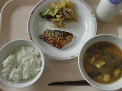 今日の給食は「ごはん」「サバの七味焼き」「きのこ入り煮びたし」「あおさのみそ汁」「牛乳」です。今日の給食からクイズです。日本で一番あおさが取れるのは何県でしょう?