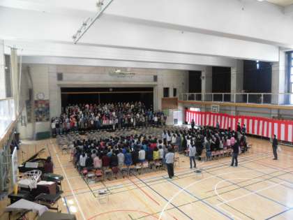 いよいよ来週に迫った卒業式。今日から5,6年生による合同練習が始まりました。