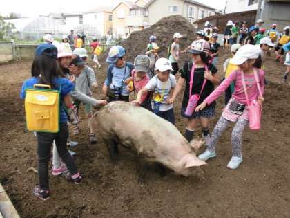 2年生が学校の近くにある農園に見学に行きました。野菜の育て方のこつを教わったり、飼われている豚を見せてもらったりしました。今日、学んだことを生かして、生活科の野菜作りに挑戦する2年生です。