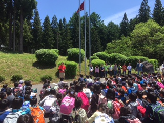 山の斜面をうまく利用して作られた斬新なデザインです。ここで3日間を過ごします。開室式も行いました。