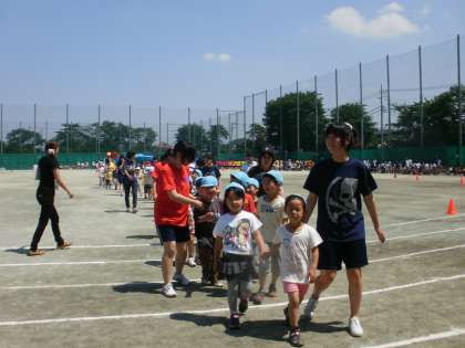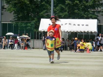 昨日、芦花高校の体育祭がありました。幼稚園の年長さんは、毎年、芦花高校の体育祭に参加しています。幼稚園と交流している生徒と一緒に電車競技にでます。高校生と一緒に走って楽しいです。広い校庭で思いっきり走りました。頑張ったね。