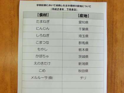 かぼちゃは、スーパマーケットなどでは、日本でつくられたものとニュージーランドやメキシコなどの外国でつくられたものが売られています。給食では、日本でつくられたかぼちゃを使っていますが、日本でつくられたかぼちゃは、ちょうど今、夏に旬を迎えます。「冬至にかぼちゃを食べると病気にならない」とも昔からいわれてきたようにかぼちゃには、栄養がたっぷりあり、中でも、体を若々しく保ったり、病気のウイルスから体を守ったりするビタミンをたくさん含んでいます。ぜひ、残さず食べましょう。