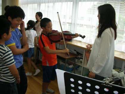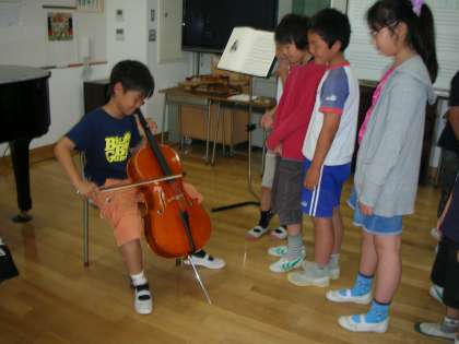 5年生は、弦楽器の体験授業をいました。バイオリン、チェロの楽器にふれ、弾きました。すばらしい演奏も聴きました。昨日に引き続き、音楽ボランティアの方が活躍してくれました。体験したことは忘れません。子供たちは、きっとこの体験を覚えていることでしょう。