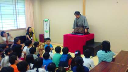夏休みの図書室開放とともに、「つかど寄席」が行われました。和室は大勢の子どもたちで満席です。実際に落語をみることで、さらに日本語への関心も高まったようです。企画をしてくださった保護者・地域の皆さま、ご多用の中、ありがとうございました。