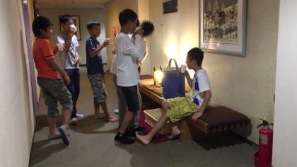 最後の夜を惜しむかのように、どの部屋も友達と楽しく過ごしています。