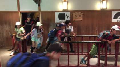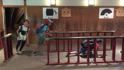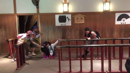 ここは忍者怪怪亭。斜めに建っているので、中に入ると錯覚でおかしな感覚になります。