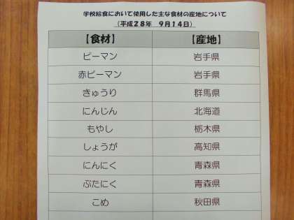 みなさん、サラダを見てください。今日のサラダには、もやし、にんじん、きゅうりが入っていますが、これらのほかにもう一つ白くて細長いものが入っていますね。これが何かわかりますか。これは、こんにゃくです。こんにゃくは、昔から作られている食べ物で、色々な料理に使われているので、なじみのある食品だと思います。しかし、意外と知られていないのが、このこんにゃくの原材料です。そこで今日は、クイズです。