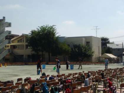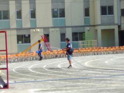 学校運営委員やおやじの会の皆様が校庭に水を撒いてくださっています。その他、学校周辺のパトロールや受付周辺での声掛け等、多くの場面で力を貸してくださっています。本当にありがとうございます。