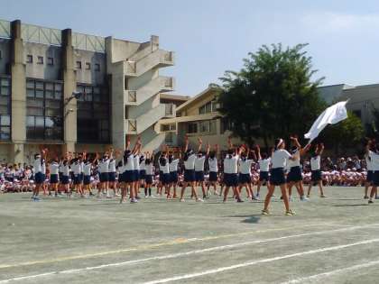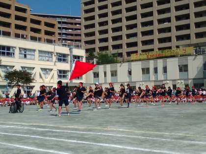 午後の部は、応援団による応援合戦からスタートです。赤組と白組のためにツカえもんとツカみちゃんが登場!みんなの応援にも熱が入ります。ワンナイトカーニバルやパー^フェクトヒューマンの替え歌も披露し、午後の競技に向けて、さらに気合が入りました。