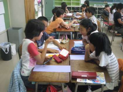 5年3組の担任は、片山教諭です。社会科の水産業の授業でした。日本の農業の学習で学んだことを生かして、日本の水産業についての課題づくりをします。問題解決的な学習をしながら、子供たちはよく考えています。