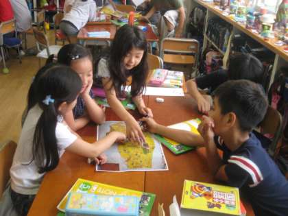 3年3組の担任は、塩田教諭です。社会科の授業です。学区域の特徴を自分たちで作った地図を見ながら考えました。、「家が多い」「畑が多い」など、塚戸のまちの特徴をグループで考えていました。塚戸のまちが好きになったことでしょう。