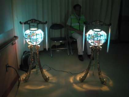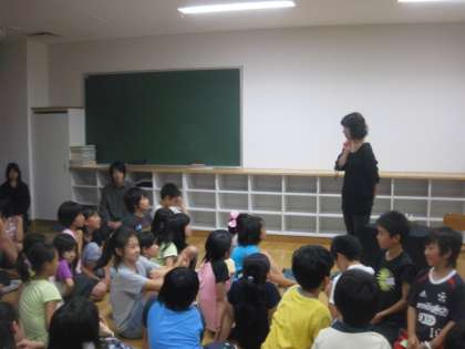 20時。山の木文庫さんによる怖いお話会が始まりました。1つのお話が終わる度に、ろうそくの炎が1本消えます。そして、最後は真っ暗・・・・・。お話がすべて終わると、夜の学校探検に出発。おやじの会のお父さんと中学生のボランティアの名コンビで、こわーい学校になりました。子供たちは興奮です。