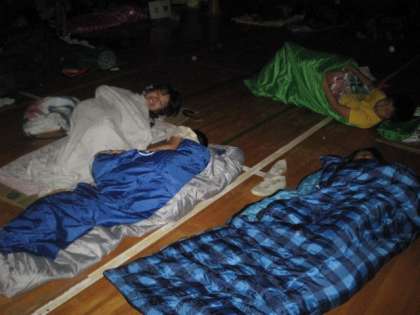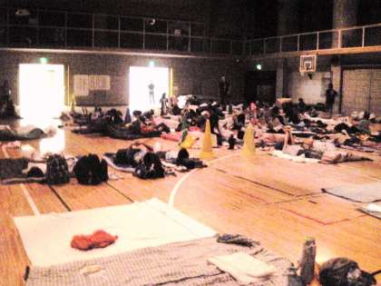 22時、消灯。体育館で寝る準備ができました。でも、すぐには寝れません。おやじの会のお父さんたちが、見てくれています。時間が経つにつれ、眠りに入る子が多くなってきています。午前零時がもうすぐ。だいたいの子が眠りについたようです。