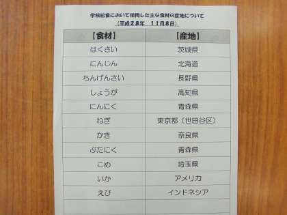 みんさん、今日11月8日は何の日か知っていますか。今日は、1・1・8という日付にちなんで“いい歯の日”とされています。そこで給食では、良い歯をつくるために大切な噛むことをテーマにした“かみかみ献立”を取り入れいました。いかや大豆、じゃこ、柿といった噛みごたえのある食材をたくさん使っています。ぜひ、よく噛んで丈夫な歯をつくりましょう。