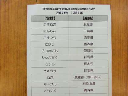 メモは、かき揚げに使われている野菜についてです。みなさん、かき揚げを見てください。緑色の葉野菜が使われていますが、何という野菜か知っていますか。これは、春菊という野菜です。春菊は、冬が旬の野菜で、その独特の香りと味のアクセントとなる少しの苦味が特徴です。油との相性が良く、今日のように油で揚げると香は残り、苦味がなくなるので、とても食べやすくなります。カルシウムやカロテンなど、栄養もたっぷりなので、ぜひ、残さず食べてください。