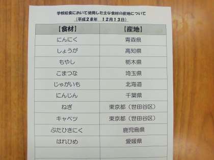 メモは、味噌ラーメンについてです。今日は味噌ラーメンです。今回は、煮込みラーメンではなく、つけ麺の形にしました。スープには、ひき肉やにんじん、もやし、キャベツ、ねぎ、コーン、小松菜など、お肉や野菜をたっぷり入れてしっかり栄養がとれるようにしています。めんだけでなく、具も残さず食べてくださいね。具は、スープの底に沈みやすいので、給食当番の人は、よくかき混ぜてから配膳をしてください。