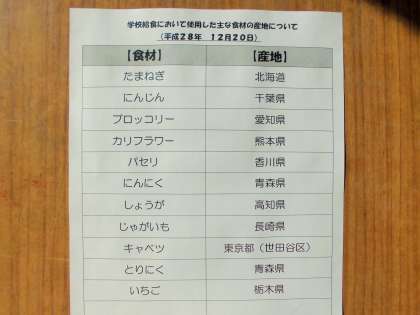 みんさん今年の給食も今日で最後です。4月から12月まで8つの給食目標がありましたが覚えていますか。配膳、食事環境の整備、手洗い、片付け、噛むこと、時間を守ること、食べ物への関心を高めること、栄養バランスについての8つです。みなさんは、いくつ意識して行うことができましたか。これらの目標は、食事の時間をよりよくするためにとても大切なことです。そして、そのことは、給食だけでなく、お家や外での食事においても同じです。給食は一度終わりますが、冬休みには、大勢での会食や外食の機会がたくさんあると思います。ぜひ、これらの目標を思い出して楽しい食事の時間を送ってください。