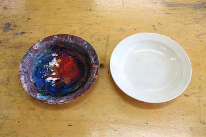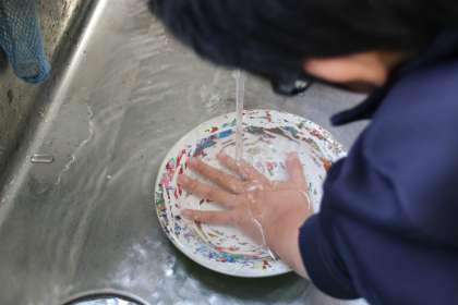 最初は白いお皿なんて一枚もありませんでした。それが今ではほとんどのお皿が真っ白になっています。楽しんで取り組めた結果、図工室の様々なところが美しくなってきています。本当に子どもたちに感謝です。