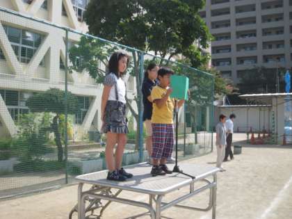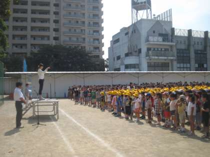 今日で、1学期が終わりです。明日から夏休みに入ります。暑い中でしたが、終業式を校庭で行いました(体育館は使えないので)。「今日は自分をほめる日です」という校長先生の言葉。児童代表の3人の子の1学期のを振り返っての話。そして、校歌を歌って終わりました。