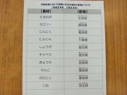 1/23 今日の給食