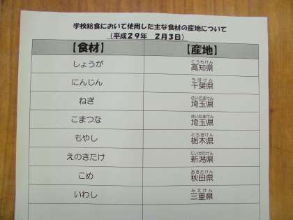 今日2月3日は、節分です。そこで、今日の給食には、節分に関係のある食べ物を2つ使っていますが、それが何かわかりますか。それは、大豆と鰯です。節分では福を呼び、鬼を払う方法として、豆まきをしますね。しかし、鬼を払う方法は、豆まきだけではありません。「柊」というトゲのある葉っぱに鰯の頭をつけて玄関に飾るという方法もあります。鬼は、鰯の臭いと葉っぱのトゲを嫌がるので、これを見ると逃げていくと言われています。