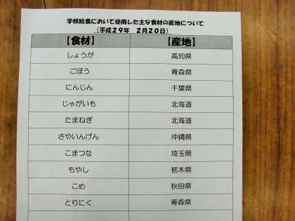 メモは、ふりかけに使われている「ひじき」についてです。ひじきは、わかめのように海で育つ「海藻」のひとつです。見た目には目立ちませんが、このひじきには、私たちに必要な色々な栄養がたっぷり詰まっています。今日はその中のひとつ「鉄分」に注目します。鉄分は血をつくるもととなる大切な栄養です。ひじきには、この鉄分がたくさん入っているのですが、体で栄養になりにくい形で入っています。これをスムーズに栄養にしてくれるのが、野菜のビタミンCです。今日の煮物や乾物和えには多くの野菜を使っています。ぜひ、ひじきの鉄分をしっかりとれるように、ふりかけだけでなく、煮物や和え物も残さず食べましょう。