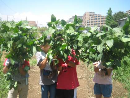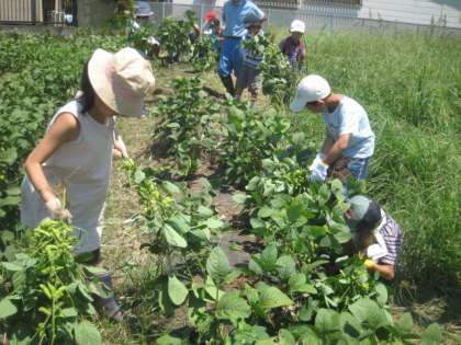 3年生は枝豆の収穫をしました。本当は、20日の日に行く予定だったのですが、枝豆の育ちが悪く、今日になりました。天候不順だったため、生長が悪かったからです。全員は参加できませんでしたが、子供たちは、大きくなった枝豆を収穫して大喜びでした。今日の夕飯に食べると言っていました。とれたての枝豆は、さぞ、美味しいことでしょう。