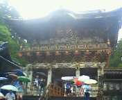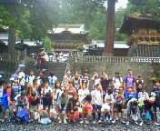 降ったり止んだりの雨の中、東照宮をグループ見学。世界遺産をじっくりと見ました。そんな様子をご覧ください。集合写真と陽明門です。