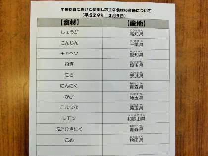 今日は、6年1組のリクエスト献立『ジャンボぎょうざ』です。この料理は、学年問わず人気のある献立ですね。みなさんが注目するこの料理ですが、それゆえ最近ひとつの疑惑がもたれているようです。それは「ジャンボぎょうざの大きさが以前より小さくなったのでないか」という疑惑です。それについてお答えします!ジャンボぎょうざは、皮、具ともに大きさ量に変わりはありません。昨年同様、ジャンボなものを作っています。もしかしたら、みなさんが成長した分、小さく見えるようになったのかもしれませんね。疑問を持つほど給食に興味を持ってくれていること、給食室は嬉しく思っています。和え物とともに残さず食べてくださいね。