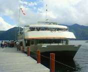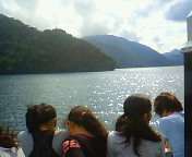14時50分、中禅寺湖の観光船に乗船。天気がよくなったので、まわりの景色は最高。湖の心地よい風を受けて気分も最高です。