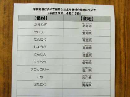 今日から一年生の給食が始まりました。今日が生まれて初めての給食という人もいると思いますが、上手に準備ができましたか。給食は、みなさんが毎日元気に学校にこられるよう栄養たっぷりの料理を出しています。ぜひ、もりもり食べて、お勉強も遊びもがんばってください。