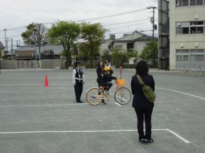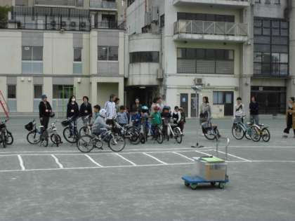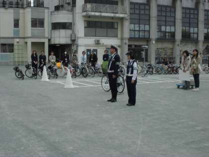 成城警察署の警察官と保護者の皆さまのご協力の下、3年生の自転車安全教室が行われました。まずは「自転車安全利用五則」と自転車点検の合い言葉「ブタ・ハ・シャ・ベル」について教わりました。その後は実際に自転車を運転しました。交差点での安全確認の仕方を中心に、安全な乗り方について体験的に学ぶことができました。この授業を受け、子どもたちは「自転車運転免許取得」ということになります。安全運転とマナーが守れる自転車ドライバーとなれるように、引き続き見守っていきたいと思います。成城警察署の皆さま、ご協力いただいた保護者の皆さま、ありがとうございました。