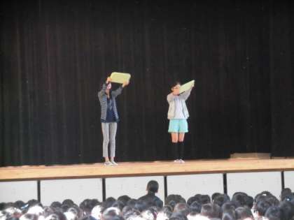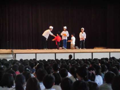 給食は、栄養士・調理員・農家の方々・動物の命など、たくさんのかかわりがあって食べることができていることを伝えました。なるべく食べられる量に調節し、残さないで食べるようにしてもらいたいと思います。