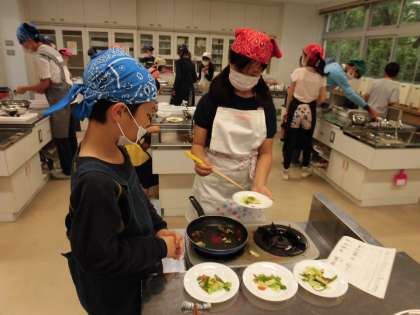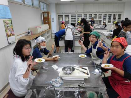 にんじんは半月切りになるグループもあり、野菜の切り方には課題が残りました。