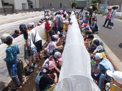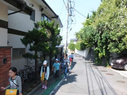 5月19日(金)は社会科「地域めぐり」に出かけました。目的は学校から見て、東と南の方角にはどんな建物があるかを見つけたり、確かめたりするためです。今日見てきた情報を、個人やクラスで一枚の地図にまとめていきます。「あっち」「こっち」と場所の説明をしてきたこれまでから「東の方向に○○がある」「南に行けば○○が見つかる」と説明の仕方がレベルアップし、これからの生活に役立つ学習となっていくことでしょう。また、地域探検の最中に川勝農園を訪ね、枝豆の様子も見に行きました。ご協力いただいた保護者の皆様、ありがとうございました。