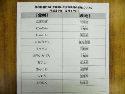 みなさん、今日は、きれいに食べるということについてお話します。昨日、みなさんが片付けたあとの食器を見ていたら、お茶碗ごはん粒がたくさんくっついていました。見た目だけでなく、食べ物を大切にし、食べ物や作ってくれた人などに感謝することを考えても、できるだけきれいに食べたいですね。これは、一人ひとりが意識することが大切です。今日は、揚げパンのごまきなこやサラダのひじきが残りやすいですが、意識し工夫してきれいに食べましょう。