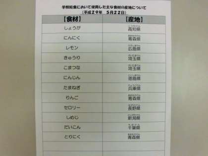 みなさん、今日は5月とは思えないほど気温が高いですね。このような日は体が疲れやすいので、一日元気に過ごせるよう、食事をバランスよく食べましょう。今日の給食は、鶏肉のバーベキューソースです。このソースは、汗をかきやすくする働きのあるしょうがやスタミナをつけてくれるにんにく、筋肉の疲れをとってくれるレモンなどを使っているため、今日のような暑い日にぴったりです。パンには切込みが入っているので野菜とお肉を挟んで食べましょう。