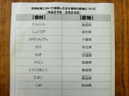今日は、旬のかぶを使ったみそ汁です。給食だよりにも書きましたが、かぶは、今月の給食で2回登場しています。1回は今日、もう1回は、先々週の11日に『かぶのレモンじょうゆかけ』という料理で出しています。かぶは、火の通し加減によって食感が全然違うことが特徴です。さっとゆでるとシャキシャキとした食感になり、長い時間ゆで続けるとホロッっとくずれるような食感になります。今日のみそ汁では、長い間ゆでているので、ホロッとくずれる食感になります。ぜひ食べてその食感を確かめてみてください。