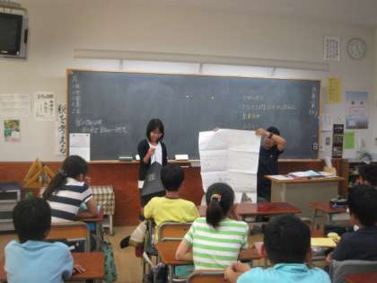 自由研究の発表会をしています。何をしたか、がんばったことなど・・・・・・。友達のしたことを見たり聞いたりして、驚いたり感心したりと・・・・。学校公開中、教室等に展示してあるので、見てみてください。、