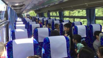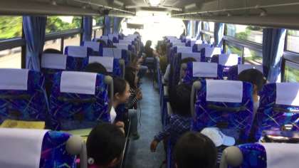 関越道はすいていて、バスも順調に走っています。1号車ではバスレクも始まっています。9:26