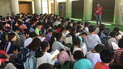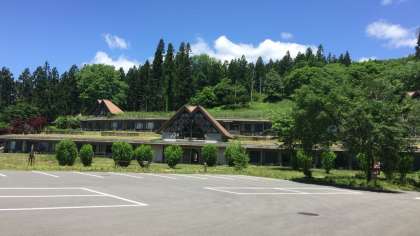 山の斜面をうまく利用して作られた斬新なデザインです。ここで3日間を過ごします。開室式も行いました。