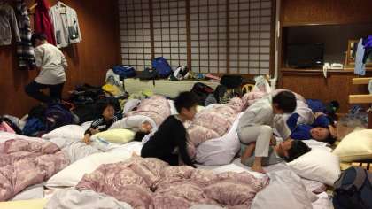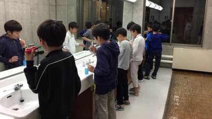 ふとんを敷いて、歯を磨いて、検温をして。