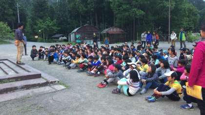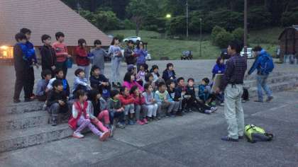 クラスごとに夜の自然を体験しました。それぞれガイドさんがついて、ちょっと怖くて、ちょっとワクワクの冒険です。野生のテンを見つけたクラスもありました。