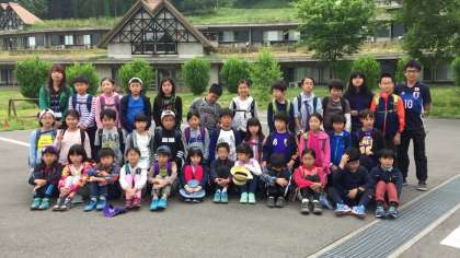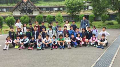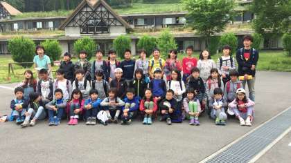 村めぐりの前に、なかのビレジの前で記念撮影です。