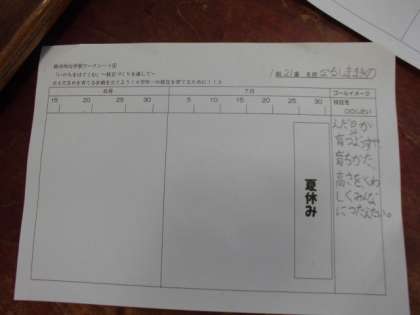 川勝農園でも枝豆を育てている3年生は、教室でも枝豆を育てています。育てる中で、子どもたちの枝豆に対する興味、関心はどんどん高まっています。「枝豆を育てるにはカブトムシのふんをまけばいいらしい」「育った枝豆をきれいに飾りつけしてあげたい」「枝豆の応援歌をつくってみたい」「育っていく様子をもっと細かく観察してみたい」など、たくさんの思いが見られました。その思いを実現するために、同じ思いの友達とグループを作り、夏休みまでの間に何ができるか、いつまでに何をすればいいかをこの時間に決めていきました。今後の活動がますます楽しみになりました。